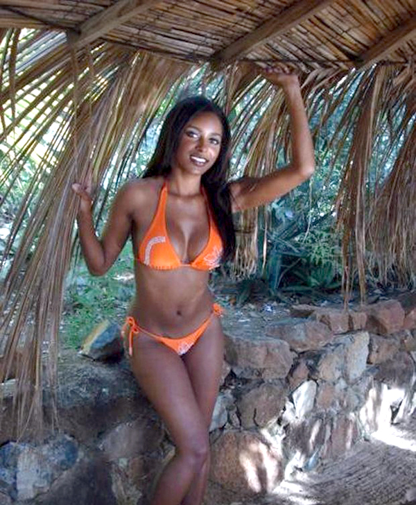Successful black nymph uncovering her vagina and giant nips